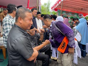 Bupati Sintang Jarot Winarno saat menyalami Ireng Maulana ketika pelepasan Calhaj Sintang